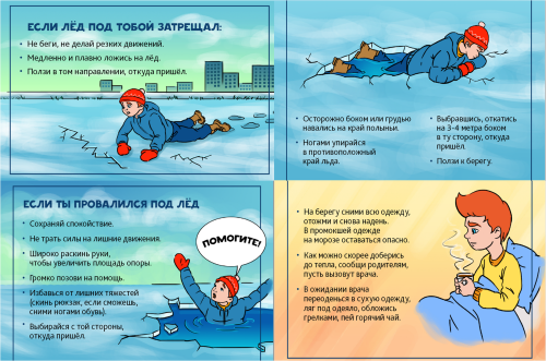 Памятки по безопасному поведению на водных объектах в зимний период можно посмотреть, нажав на ссылку